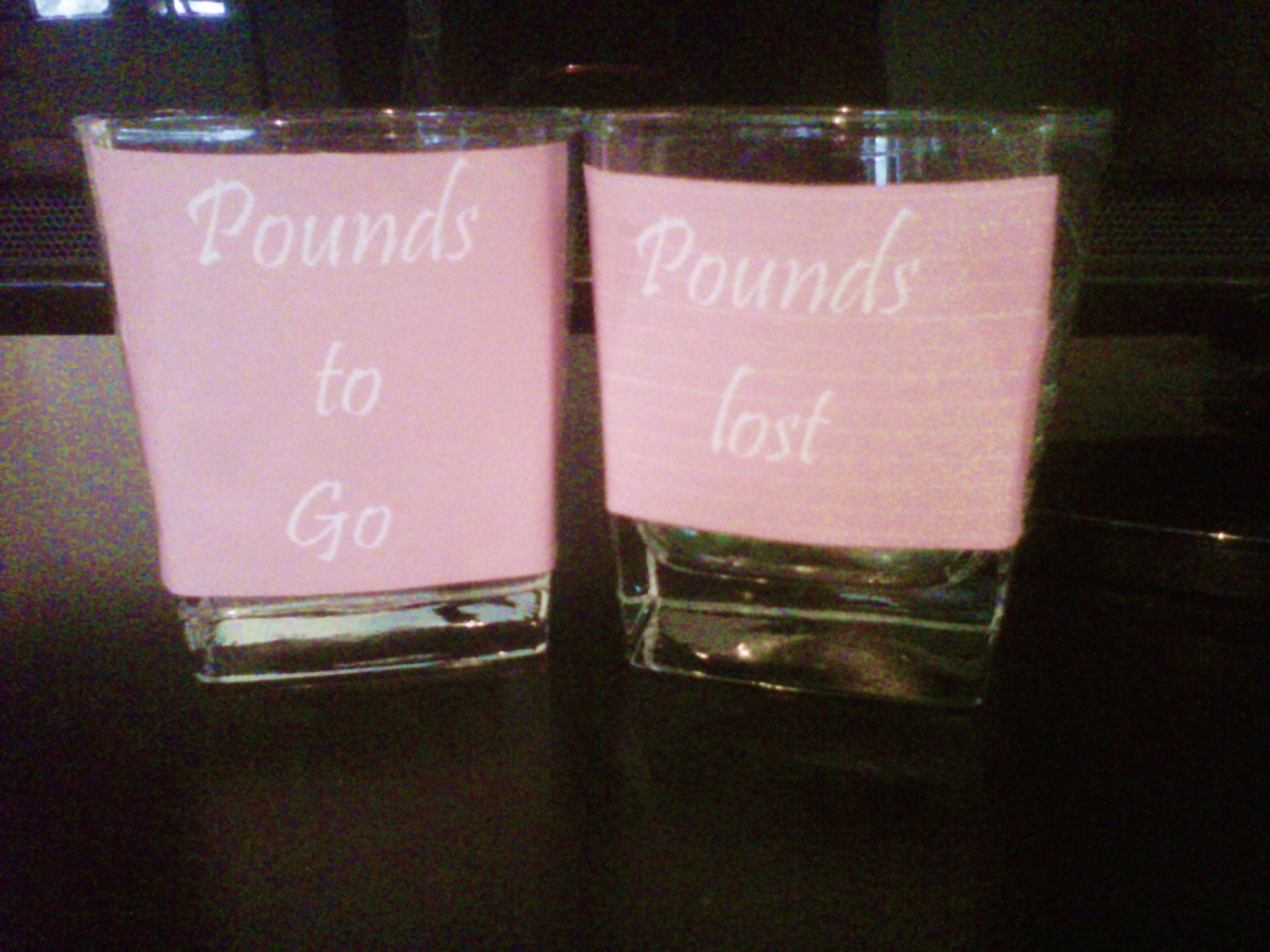 - Make "Pounds Lost" & "Pounds to Go" jars. Transfer a marble (or three) every time you get on the scale!